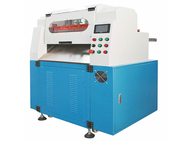 還有一種是將聚合物帶條切成顆粒。這就需要一個特殊的切片機,這種切片機由導條板、喂入輥、加壓輥、旋轉刀盤組成。工作原理是:利用刀盤由無級變速器傳動,喂入輥由刀盤通過一組變換齒輪傳動,而刀盤按切粒尺寸裝有多把刀片??梢宰孕姓{換變換齒輪可改變切斷長度和無級變速器可改變帶條的惟入速度。
